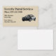 Servicios de patrulla de seguridad diseñados profesionalmente con la imagen de un auto patrulla en el fondo de un diseño simple y moderno para empresas que proporcionan seguridad para ser contratadas en el camino de guardias de seguridad, patrulleros de barrio contratados o guardias de cuerpos.