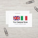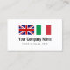 Servicios de traducción: plantilla de tarjeta de visita del traductor inglés italiano. Diseño de tarjetas de visita personalizado con el logo de la compañía británica Union Jack e Italia. Tarjetas simples con tipografía moderna para el nombre y el lema. Tarjetas profesionales para servicios de traducción, profesores de idiomas, educación, industria de viajes, productos, servicios de tramitación de visados, servicios de traductores, derecho internacional, agencia de viajes, transporte, exportación de importaciones, empresa de traducción de idiomas, biz comercial, profesional independiente, etc. Disponible en diferentes tamaños, espesor de papel y forma de corte de esquina redonda. También disponible para otros idiomas. Bandera de Italia e Inglaterra Gran Bretaña. Cargue sus propios indicadores de país opcionalmente. Obtén ideas más creativas e inspiración gratis en nuestra tienda única.