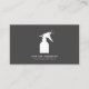 Moderna tarjeta de visita blanca y gris oscuro diseñada para servicios comerciales o residenciales de limpieza, limpieza, servicio de mucama o artículos de conserjería. Diseño con un icono de limpieza blanca. Personalizar el frente con dos líneas de texto personalizado en un fondo gris oscuro, y agrega tus detalles de contacto completos a la parte posterior y a los detalles de los medios sociales. Diseño moderno de moda.