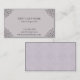 Elegante tarjeta de visita con rincones ornamentados en suave lavanda y gris.