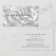 This elegant modern business card features an image of white silk, framed on the top and bottom by gray and white watercolor agate borders trimmed with sparkly silver faux glitter. The word "microblading" appears in handwriting script with swashes before and after. Personalize it with your name in off-black sans serif font and your contact information on the reverse.