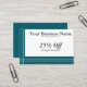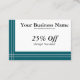 Classic, simple, and elegant, this discount card or customer rewards card features dark teal color blocks down the left side and on the bottom, with two narrow silver stripes down and across the teal borders. Very sharp, professional, and timeless, and easily adaptable to a variety of businesses and professions. The back is plain teal.