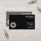 Una plantilla de tarjetas de visita clara, elegante y atractiva, con una flor o símbolo de estrella de estilo Art Déco simple pero que atrae la atención. Información principal de la empresa en la parte delantera, con nombre y contacto personal en la parte posterior, en un fondo gris con una versión blanca del símbolo.