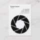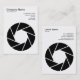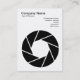 Una plantilla de tarjeta de visita con un símbolo de apertura en negrita. Nombre de la empresa, tipo de negocio y dirección en la parte delantera con nombre, cargo, telefonía, dirección web y correo electrónico en la parte posterior, con el mismo diseño.