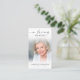 Simple memorial prayer card featuring a cherished photo of your loved one and the sentiment IN LOVING MEMORY in elegant calligraphy script typography on the front and a suggested prayer or your custom text and optional cross on the back. These cards provide guests with a personal reminder of the one who has passed—something beautiful they can carry or keep close.