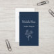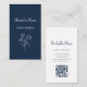 Código QR Navy Blue Botanical floral tarjeta de negocios, con un sencillo diseño de margarita. Con letras en blanco y azul marino de personalizable, puedes añadir tu propia información. Añade tu sitio web al campo de código QR para que tus clientes lo examinen. Ideal para promocionar tu negocio de diseño con un estilo profesional y femenino.