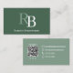 Tarjeta De Visita Simple Green Monogram QR Code | Connect with Me