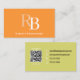 Tarjeta De Visita Simple Monogram QR Code Orange | Connect with Me