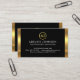 At the top is a gold circle logo where you can place your name initials-monogram (You can use different sizes of fonts or styles to your liking). Underneath this lies your prestigious name, the job title and its contact details.
