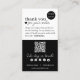 Sencillo código QR en blanco y negro Minimalista y moderno Código QR Gracias tarjeta para empresas Añade esta elegante tarjeta de agradecimiento a tus pedidos de clientes por un toque cálido. Muestra tu apreciación y alegra tu embalaje con un diseño clásico de moda y letras modernas. Personalízalo incluyendo un código de cupón especial para alentar compras repetidas. Agregue su logotipo y perfiles de medios sociales para ayudar a los clientes a mantenerse conectados. Incluya el enlace de su sitio web en el código QR para un acceso fácil. Ayude a crear relaciones sólidas con los clientes y a hacer que su marca sea memorable.