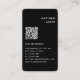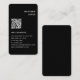 La moderna y sencilla tarjeta de presentación de código QR en blanco negro y negro presenta un diseño sencillo de la tipografía blanca moderna sobre fondo negro con un código QR escaneado personalizado. Diseñado por ©Evco Studio www.zazzle.com/store/evcostudio