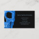 Cabeza de cráneo Diseño de textura creativa de neón gótico azul negro. Tarjetas de visita profesionales de artistas de tatuaje. Guay, único, temible, moderno y de moda. Derechos de imagen de Marg Seregelyi Photography.