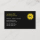 Esta plantilla de tarjeta de negocios de energía solar tiene un símbolo solar y de energía en un fondo negro que lo hace pop. Un diseño clásico con información que puede alterar para adaptarse a sus servicios relacionados con la industria de la energía solar, incluyendo pero sin limitarse a paneles solares para el hogar.