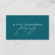 Un hermoso diseño que incorpora el logotipo de su empresa y su código QR. Esta elegante tarjeta de presentación de guiones con firma verde azulada oscura es ideal para todo tipo de negocios. Una forma sencilla y profesional de presentar tu negocio. Iconos de medios sociales incluidos en el diseño de esta tarjeta de visita para uso personal. Personalice sus detalles para crear su propia tarjeta de visita única.
