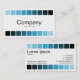 Una plantilla moderna y elegante de tarjetas de perfil y negocios. Bordeado de arriba a abajo con una fila de nueve cuadrados redondeados que van de un azul claro a negro. Información de la empresa en la parte delantera con el nombre y los datos de contacto en la parte posterior.