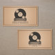 A vintage-style business card with an aesthetic evoking nostalgia and a love for analog music, and featuring a stack of vinyl records in a warm, muted sepia tone. The topmost record has a faded label displaying customizable "Rock & Folk" text.