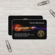 An all black cover features a colorful lightning that flashes across the card's face. It obtains power from your job title "electrician" and the caption remarks which you can change. Over at the top right corner lies your prestigious name. The contact details and a gold "bulb-tools" logo you can use are located near the base of the card.