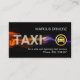 An all black cover is accentuated by a colorful lightning that flashes across the card's face. This is the fast service that you provide. To the left of this is the luminescent business name "TAXI" which you can change alongside a gold taxi logo you can use. At the top is your prestigious name with the contact details located near the base.