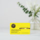 An all bright yellow cover is accentuated by a faux gold stripe near the center of the card. Riding on this gold stripe of success is your business name with a creative gold "letter-e" logo you can use in the opposite direction. The letter-e can represent "electrician" or possibly your business name. Below the logo is your prestigious name, job title and the contact details with a slogan caption in the opposite direction.