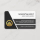 Overleaf, in a grey cover, card details are on the left. At the top is the gold logo followed by your prestigious name and the contact details.
