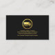 Una cubierta negra contiene un cartel de líneas doradas en la base. El cartel dorado contiene los detalles de contacto de tu teléfono con tu prestigioso nombre de tamaño excesivo justo detrás. En la parte superior de la tarjeta se encuentra el nombre comercial "TRUCK FOR HIRE" y una opción de lema para publicitar sus servicios. Puede cambiar los comentarios del pie de foto por el eslogan para adaptarlos a sus necesidades de servicio. En la dirección opuesta hay un logotipo de semi camión dorado que se puede usar. Al dorso, el logo del camión dorado está en la parte superior seguido de los detalles de contacto y una opción de subtítulo de eslogan. Una gran tarjeta para los que viajan en transporte y camiones.
