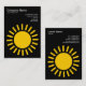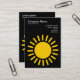 Una plantilla de tarjeta de visita con un símbolo Sun. Nombre de la empresa, tipo de negocio y dirección en la parte delantera con nombre, cargo, telefonía, dirección web y correo electrónico en la parte posterior, con el mismo diseño.