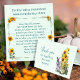 Folded farm-themed business cards with thank you message to customers inside. A donkey, ducks and sunflower on the front of mint blue cards. All text is blue and easy to change. On the front, "Thank you for supporting our small business". Inside use the templates to add your business / farm name with website at the top. A sunflower frame holds the "thank you" message for customers. The sample wording includes a discount on the next purchase. Change the wording as you wish. Hand out at a farm stand or market stall. Include in packaging if it's an online business.