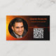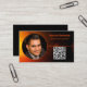 Esta tarjeta profesional presenta una apariencia de puesta de sol en negro y naranja con un texto y un marcador de posición de código QR en la parte delantera y otros detalles sobre un fondo negro en la parte posterior. Personalice los campos de texto, elimine el texto o el personalizar para seleccionar el estilo de fuente, el tamaño y el color que prefiera. Reemplace la foto y el código QR por el suyo. Una foto cuadrada funciona mejor. Utilice el enlace de código QR para enviar posibles clientes a revisiones, fotos o su sitio web.
