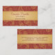 Una mirada exótica que aclarará encima de cualquier oportunidad del establecimiento de una red. Los diseños de oro de Paisley contra un naranja rico componen el fondo de esta tarjeta de visita. La información de contacto imprime contra una banda amarilla de oro en el frente y la parte posterior. Un suntuoso busca la materia textil o los interioristas, los coordinadores del acontecimiento o las tiendas al por menor. Disponible en colores alternos con los productos a juego.
