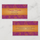 Una mirada exótica que aclarará encima de cualquier oportunidad del establecimiento de una red. Paisley anaranjada diseña contra violeta rica compone el fondo de esta tarjeta de visita. La información de contacto imprime contra una banda anaranjada de la pendiente en el frente y la parte posterior. Un suntuoso busca la materia textil o los interioristas, los coordinadores del acontecimiento o las tiendas al por menor. Disponible en colores alternos con los productos a juego.