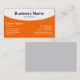 Una plantilla de tarjeta de visita con un área de encabezado curvada para el nombre de la empresa y el tipo de negocio, etc., con el nombre, el título del trabajo y otros detalles de contacto en la sección siguiente. El lado inverso de la tarjeta se ha dejado en blanco, lo que puede ser útil para escribir notas, pero también puede personalizarse más.