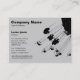 Una plantilla de tarjeta de visita con una silueta de alto contraste de tres niños divirtiéndose montando una rotonda de tipo balancín. En esta versión más grande todos los detalles se han colocado en la parte delantera de la tarjeta a la izquierda de la decoración de la imagen. El reverso también está decorado con el mismo motivo de imagen, pero se ha dejado de negro. Esto se puede dejar tal como está, para usar para notas, etc, o puede ser personalizado. Esta versión tiene un fondo de color en el frente con un fondo gris claro en la parte posterior.