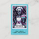 Una exclusiva panadería con temática tarot, una carta de negocios de un chef pastelero con esqueleto con bizcocho y bizcocho. Un estilo único con panadero de esqueletos en el gorra del chef.
