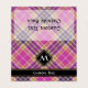 Tartán rosa, amarillo dorado y azul. Patrón sin foco. texto personalizado y monograma.