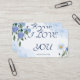 Este hermoso diseño acuarela floral es perfecto para cualquier ocasión. Con delicadas flores azules y un toque de vegetación, este diseño es a la vez elegante y romántico. El mensaje de "te amo" lo convierte en una gran elección para El día de San Valentín, aniversarios o cualquier otro momento en que quieras expresar tus sentimientos. También es perfecto para añadir un toque de personalización a tu papelería boda, invitaciones o tarjetas de agradecimiento.