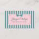Tarjeta De Visita Teal & Pink Stripes & Bow Retro