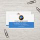 A la vuelta, en un fondo blanco, todos sus detalles están en el centro. En el muy superior, hay un logotipo opcional. Debajo de él, es el nombre comercial y sus detalles. Si usted decide cargar una foto en vez de un logotipo, las dimensiones son el pix 1.000 x 1.000. Una línea azul similar cubre la base de la tarjeta.