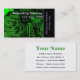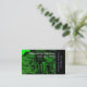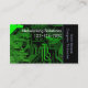 Gráfico de una placa de circuito con un tono verde neón. Área del lado negro para el nombre de su empresa en texto vertical. Esta plantilla de tarjeta de visita tiene muchos usos para programadores de computadoras, profesionales de TI, técnicos de informática y cualquier ocupación profesional relacionada con la informática.