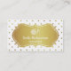 La imagen de ejemplo: Moda de puntas de polka dorada blanca con hilo de rosca estilo Dressmaker Stylist Seamstress - Tarjetas de negocios elegantes y únicas. Es un diseño perfecto para Dressmaker, diseñadora de moda, sastre, diseñadora de vestuario, creadora de lana y más. Todos los estilos de texto, colores, tamaños se pueden modificar para adaptarlos a sus necesidades. Si necesita alguna personalización, por favor contáctame.