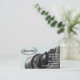 Tarjeta de visita del fotógrafo con la foto de una persona que sostiene una cámara de SLR del zoom con el emblema con su nombre en él. Diseñado para los fotógrafos implicados en videografía, casando fotografía, o los retratos.