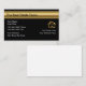 Clásicas tarjetas de negocios inmobiliarias con un símbolo de casa de gama alta de color golf y un moderno banner de nombre de diseño. Las mejores tarjetas de visita para temas relacionados con bienes raíces, inmobiliarios, servicios para el hogar, o handyman o un tasador de la casa.