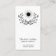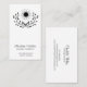 Una simple y elegante tarjeta de visita de terapeuta masajista con una luna en silueta contra un laurel con un tipo de guión fluido como una simple tarjeta de visita en blanco y negro. Muestra tu propio tipo de masaje. Elegancia simple