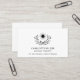 Una simple y elegante tarjeta de visita de terapeuta masajista con una luna en silueta contra un laurel como simple tarjeta de visita en blanco y negro. Enumera tus propios servicios de masaje. Sencilla elegancia.
