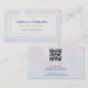 Una carta de negocios con un relajante masaje holográfico terapeuta con un suave fondo de perla iridiscente y elegantes acentos dorados. Diseñado para masajistas, propietarios de spa y profesionales del bienestar que desean un diseño moderno y lujoso para mostrar sus servicios. Personalizable total con tu nombre, título, detalles de contacto, código QR y enlaces a redes sociales, la forma perfecta de impresionar a los clientes y construir una marca de bienestar profesional.