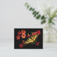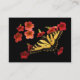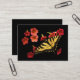 Esta exquisita tarjeta de intercambio de artistas de fotografía de arte fino presenta una mariposa de cola de cigalas amarilla y negra sobre flores calibrachoas rojas y rosas.
