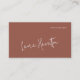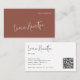Elegant modern handwritten signature calligraphy script name feminine basic terracotta natural business card template with scanning QR code to website, catalog, or portfolio. Suitable for promotional marketing, personal branding, and networking for small business or independent business professionals: makeup artists, hair stylists, home designers, personal stylists, event wedding planners, lifestyle bloggers, writers, filmmakers, screenwriters, and artists.