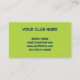 Personalizable a ambos lados Padel (tenis POP, Paddle Tennis) Tarjeta de negocios Club con dos raquetas de padel cruzadas y balón de padel a la izquierda. Nombres y datos de contacto al revertir. Línea extra en la parte inferior. Fondo verde vivo en la parte posterior