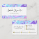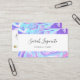 Una pintura digital abstracta para las obras de arte con brillantes tonos pastel de azul cian claro, púrpura y rosa. Los colores y las texturas se mezclan para crear este toque psicodélico de mármol holo. El diseño se repite en la parte posterior de la tarjeta. La parte frontal incluye una fuente de guión cursiva de personalizable para su nombre en negro, y un lugar donde puede agregar el título de su trabajo. Esta tarjeta funciona bien para cualquier profesional, incluyendo consultores, freelancers, diseñadores de interiores o estilistas. La parte trasera incluye iconos de medios sociales así como iconos de contacto en una textura de Relieve metalizado dorado, y todos son personalizables y se pueden mover por ahí. Esta tarjeta de visita es una forma elegante y moderna de compartir tu profesión con clientes potenciales.