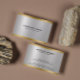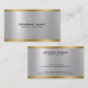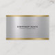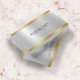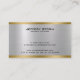 Elegante estampado de textura metálica brillante de color plateado, estilo de acero inoxidable con acentos de borde dorado, plantilla de tarjeta de visita: tipografía de personalizable en negro. Diseño minimalista.