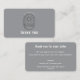This modern gray thank you card is engineered for small business owners who want maximum return from every package. The front features your custom badge logo with a bold THANK YOU. The back delivers 25% off their next order, a five-star review request, and an invitation to tag you on social media — all in one powerful layout.